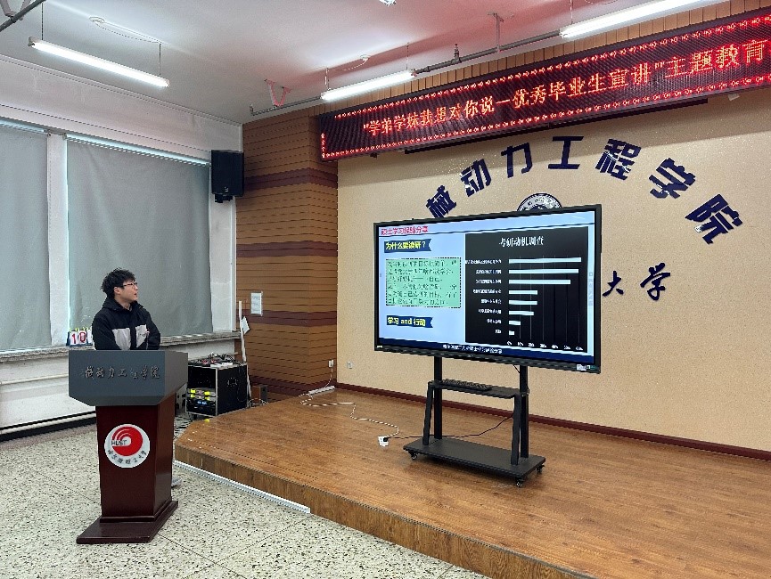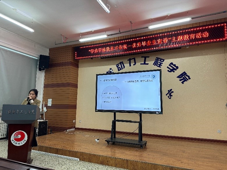 随后,优秀硕士毕业生申佳宁从研究生学习、实践、工作三方面给学弟学妹做了经验分享,重点介绍了职业选择和求职经历经验,在理论知识学习方面,她建议学弟学妹要重视专业理论知识学习的同时,要在研究生导师指导下,积极参与导师科研项目和专业学科竞赛,多读、多思、多写、多参与科研项目和文献学习。