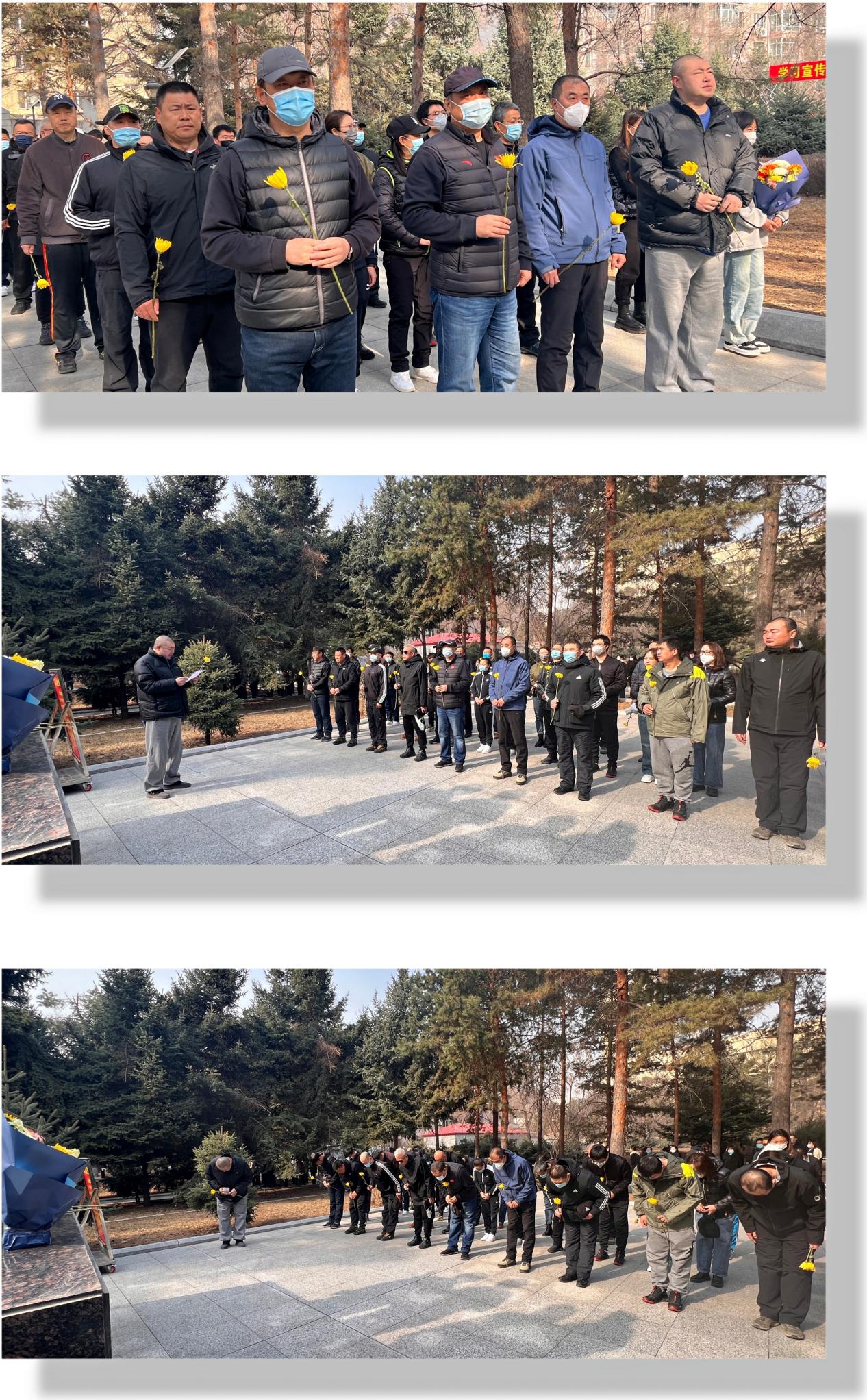 清明节期间为了传承红色基因,弘扬以伟大建党精神为源头的中国共产党人精神谱系,4月5日,体育教学部全体党员怀着无比崇敬的心情,来到哈尔滨烈士陵园深切缅怀革命先烈的丰功伟绩。