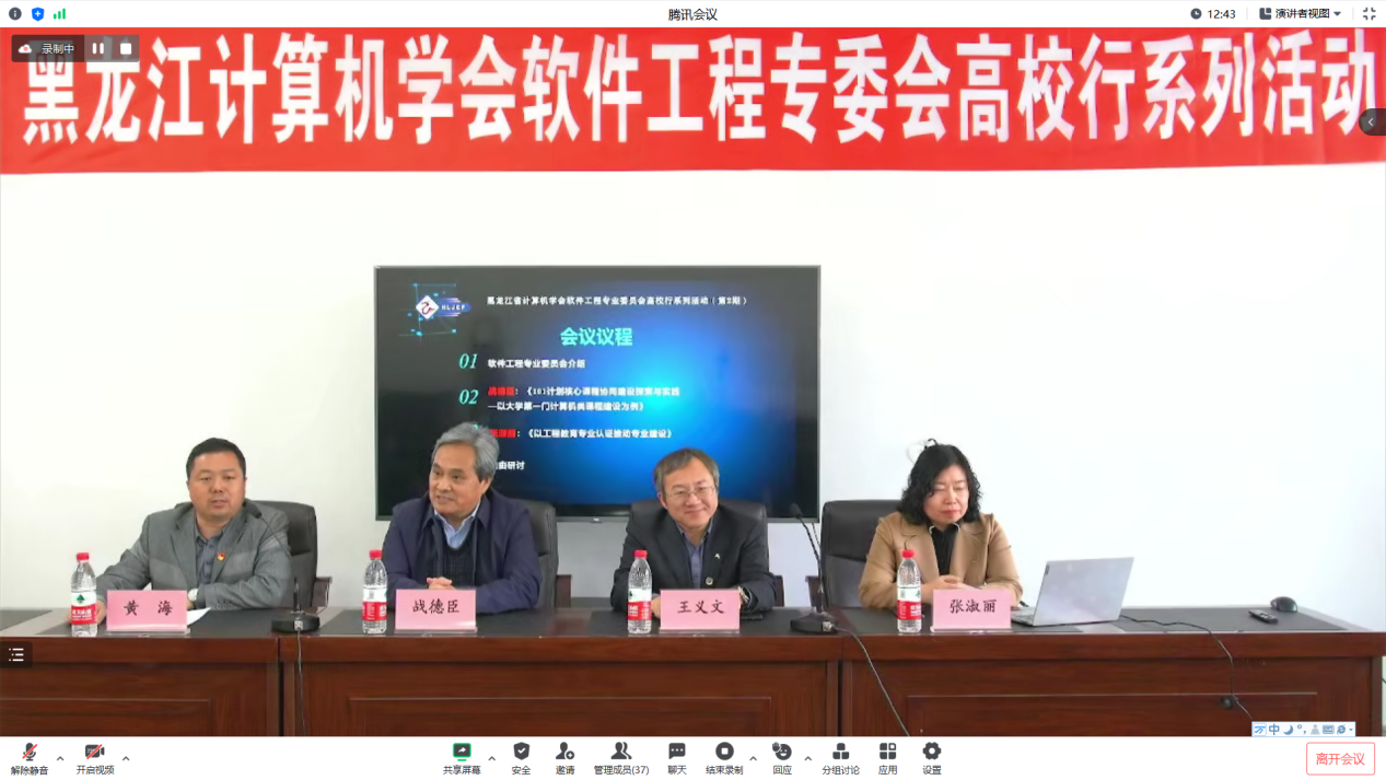 为贯彻新时代全国高等学校本科教育工作会议精神,对接“双万计划”、“101计划”,做好一流专业、一流课程的培育与建设工作,提升教学质量,黑龙江省计算机学会(HLJCF)软件工程专业委员会特启动高校行系列活动。5月10日14:00-17:00,哈尔滨理工大学计算机学院承办HLJCF软件工程专业委员会高校行活动(第2期),本次活动通过线上和线下两种方式进行,线下会场由计算机科学与技术学院组织,线上会场面向全省计算机高校教师以腾讯会议的形式开展,讲座邀请了HLJCF软件工程专业委员会主任、哈尔滨工业大学战德臣教授、哈尔滨理工大学计算机科学与技术学院副院长张淑丽教授作为主讲嘉宾。
