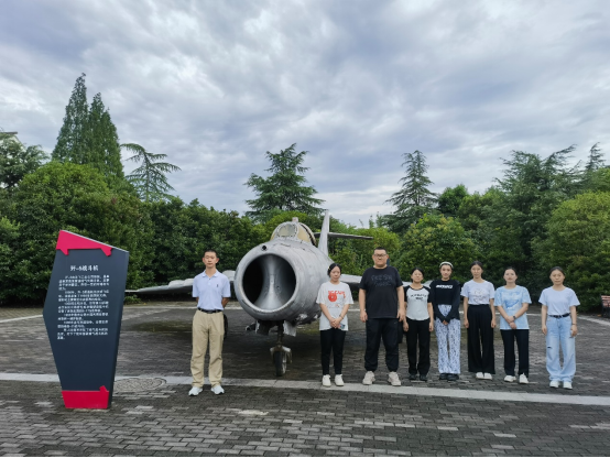 江苏实践团成员们在新四军江南指挥部功勋战斗机前留影