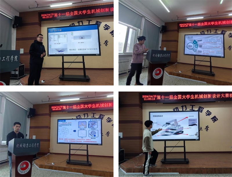 第十一届全国大学生机械创新设计大赛哈尔滨理工大学校内选拔赛由机械动力工程学院承办,于4月28日9时在西区教学主楼C305成功举办,竞赛指导教师、评审教师、参赛学生参加了本次活动。比赛筹备阶段,成立了由教学副院长牵头的工作小组,对校赛程序和评审规程进行了精心策划。评审会过程中,评审教师从应用前景、设计的创新性、加工工艺、成果展示等方面提出了宝贵意见和建议,并按序确定了入围省赛的作品。