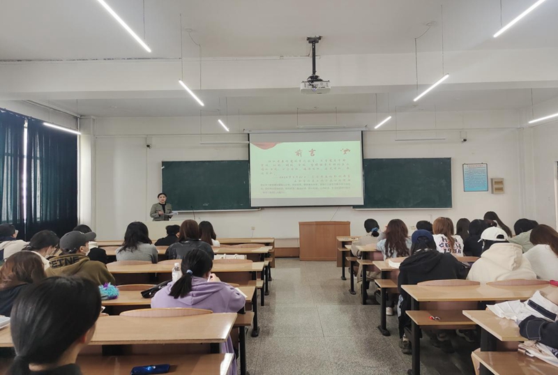 4月24日,外国语学院分党校于南区1-536教室举行党课培训开班式,外国语学院分党校主任丁鑫博在开班式上讲话。