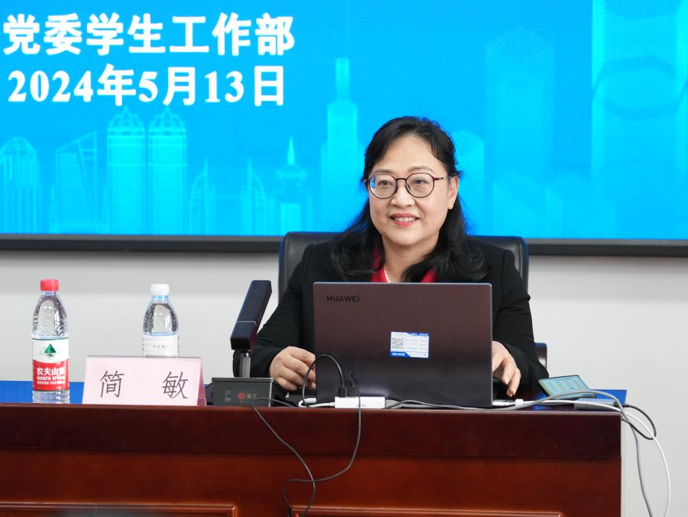 为深入贯彻落实党的二十大关于加快建设教育强国的战略部署,全方位提升我校辅导员素质能力,提升我校学生工作水平,促进辅导员工作系统化、科学化、规范化。5月13日,学校在教学主楼E1523举办辅导员素质能力提升专题培训,邀请全国“最美高校辅导员”、全国“高校辅导员年度人物”、全国首届辅导员名师工作室负责人、二级教授简敏作题为“高校辅导员六点工作法”的专题讲座,党委学工部班子成员、全体副书记及辅导员参加本次培训。培训由党委学生工作部部长戴湘竹主持。