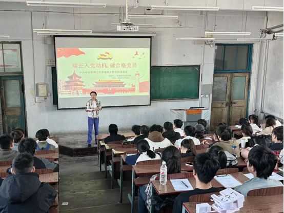 4月23日,学院党务辅导员于海洋为培训学员讲了一堂主题为“哈尔滨理工大学校史--大珩精神”的党课,激励学员要继承老校长留给我们的宝贵精神财富,弘扬“忠诚祖国、献身科学,淡泊名利、寻优勇进”的王大珩精神,同时希望学员要明确大目标,不断学习强素质;投身大天地,实践锻炼长才干;闪耀大舞台,全面发展练能力;锤炼大胸怀,求真务实正作风。