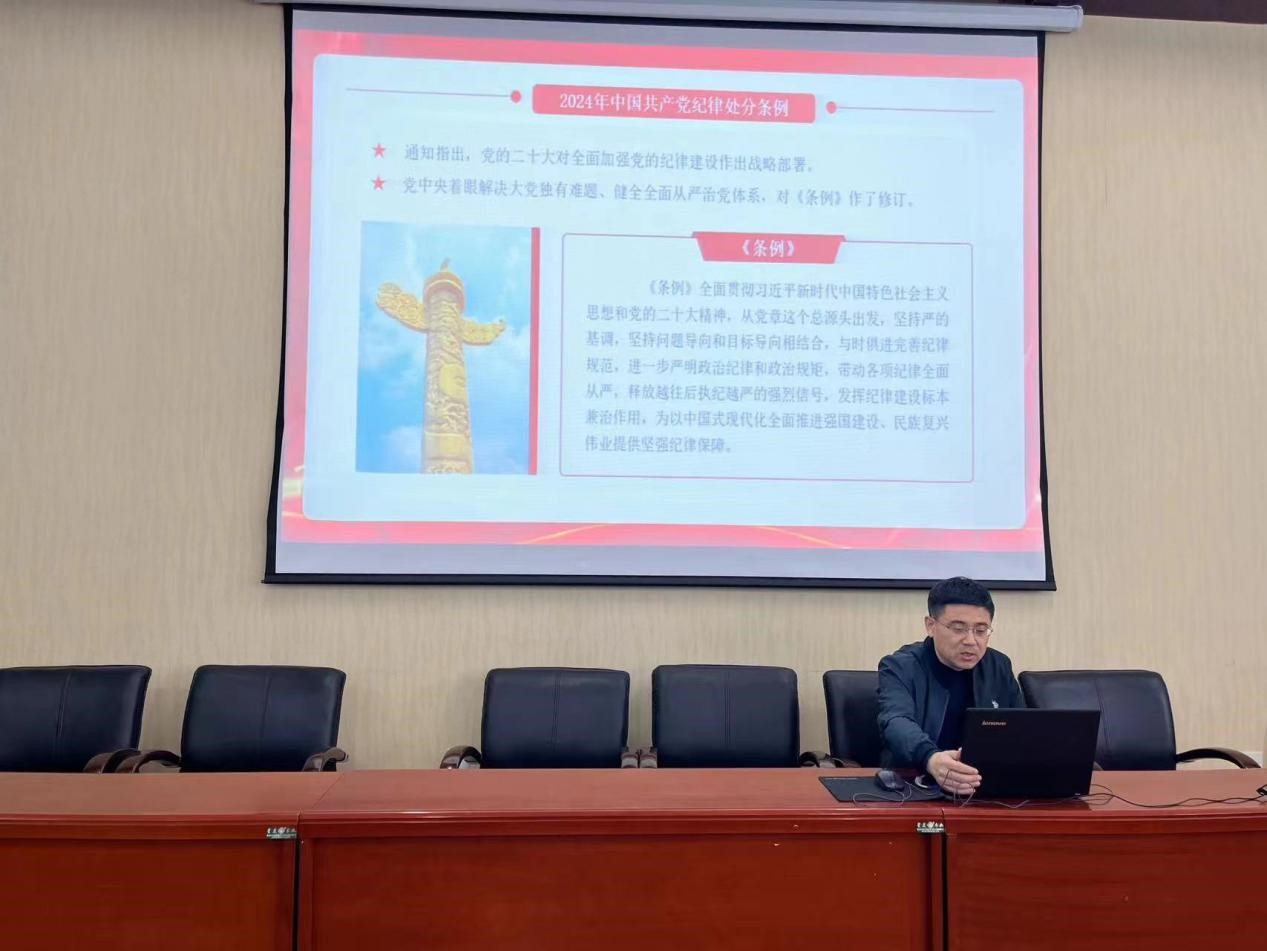 学院党委书记贾红宇为学员讲授《学习贯彻新纪律处分条例 形成知纪明纪守纪自觉》为主题的党课,他强调,作为新时代青年,同学们要坚持不懈地用习近平新时代中国特色社会主义思想凝心铸魂,用党的创新理论武装自己的同时,坚定理想信念,锤炼党性,严格遵守党的纪律与要求,时刻保持警惕,切勿触碰红线。
