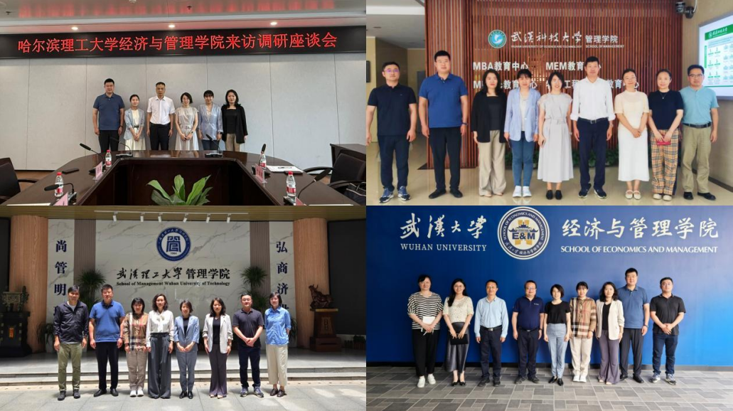 院长王莉静一行赴华中科技大学管理学院、武汉科技大学管理学院、武汉理工大学管理学院、武汉大学经济与管理学院进行座谈交流。调研团队同各高校相关领导及教师围绕学科建设、师资队伍建设、MBA项目招生宣传与建设、期刊和智库建设等问题展开深入交流。