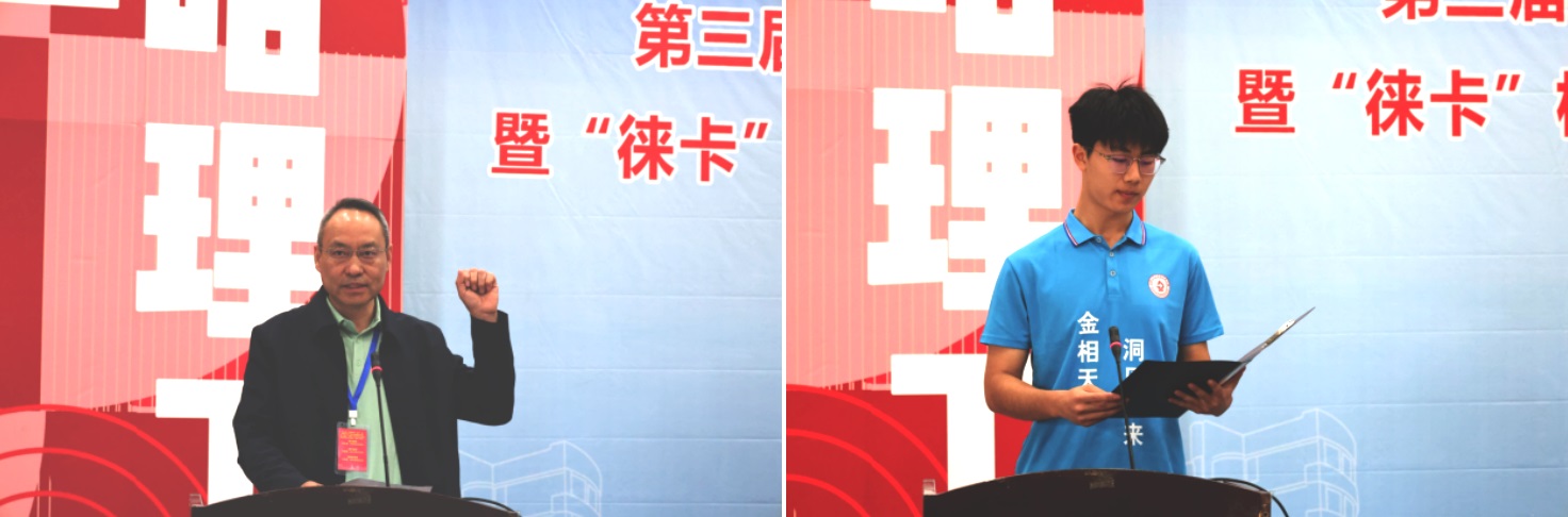 评审委员会代表、哈尔滨工程大学李新林代表大赛评审委员会对全体师生宣誓,严格履行评审规范,严格执行评审标准,确保公开、公正、公平,同时对参赛选手寄予厚望,希望赛出自己最好成绩。