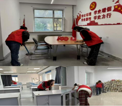 2025年10月20日、21日,学生入党积极分子、发展对象、预备党员学员们共同行动,对学院多个会议室、党史小屋及资料室等开展了专项清扫服务活动,在大家的协力劳动下,学院公共区域环境焕然一新。参与活动的学员们纷纷表示:“志愿服务不是一次的热心、一时的热闹,能为学院营造整洁的学习与工作环境、获得师生的认可,这份归属感才是志愿活动的意义所在。”