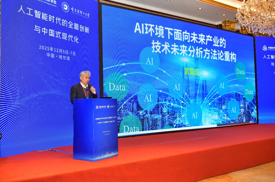 北京工业大学经济与管理学院教授黄鲁成以“AI环境下面向未来产业的技术预判方法重构”为主题作主旨报告。他指出:面向仍处于萌芽阶段的未来产业,传统技术预见方法在动态性与数据规模方面存在明显局限,亟需构建适应AI环境的新方法论体系。他强调,这一重构的本质在于从“静态评估”向“动态演化分析”的范式转变,其有效性的关键在于能否在快速迭代的AI环境中,持续捕捉技术突破、产业需求与社会变迁的互动信号,为未来产业布局提供兼具前瞻性与韧性的决策支撑。