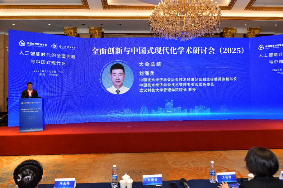 为学习贯彻习近平经济思想和习近平总书记关于科技创新的重要论述,践行党中央提出的“构建支持全面创新体制机制”的战略要求,由哈尔滨理工大学、中国技术经济学会技术管理专委会、中国技术经济学会冶金技术经济分会主办,哈尔滨理工大学经济与管理学院、清华大学技术创新研究中心承办的“全面创新与中国式现代化”学术研讨会于2025年12月5日至7日在黑龙江省哈尔滨市召开。会议以“人工智能时代的全面创新与中国式现代化”为主题,围绕全面创新管理的理论深化与实践路径展开深入研讨,为提升国家创新体系整体效能凝聚智慧、贡献力量。来自全国高校、科研院所、产业界的专家学者齐聚哈尔滨,共商全面创新管理发展大计。