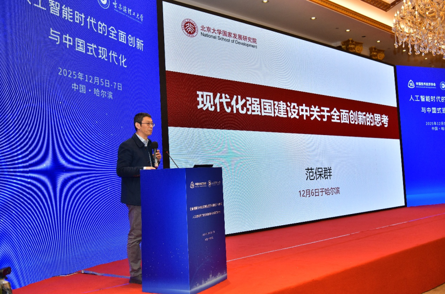 北京大学国家发展研究院金光讲席研究员、智库中心常务副主任范保群以“现代化强国建设中关于全面创新的思考”为题作主旨报告。他指出,全面创新不仅是技术突破,更是体制机制与战略协同的系统革新。范保群以中国高铁从“跟跑”到“领跑”的跨越为例,说明在国家重大基础设施建设中,政府发挥着关键的协调与支撑作用。高铁网络显著降低了经济社会运行的“协作成本”,加速了生产力布局与产业链形成,体现了有效市场与有为政府的结合。