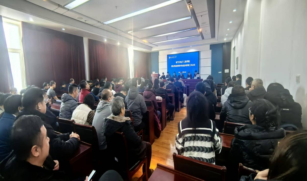 为全面贯彻落实学校《关于加强考风考纪教育和考试组织管理的通知》精神,进一步压实考试管理主体责任,营造公平公正、严谨有序的考试环境,1月4日下午,电气与电子工程学院在教学主楼G1012会议室召开全院教师大会,专题部署考风考纪建设及考试组织管理相关工作。学院领导班子成员、教学处学籍科王彦刚及全体教师参加会议,会议由学院党委书记刘骥主持。