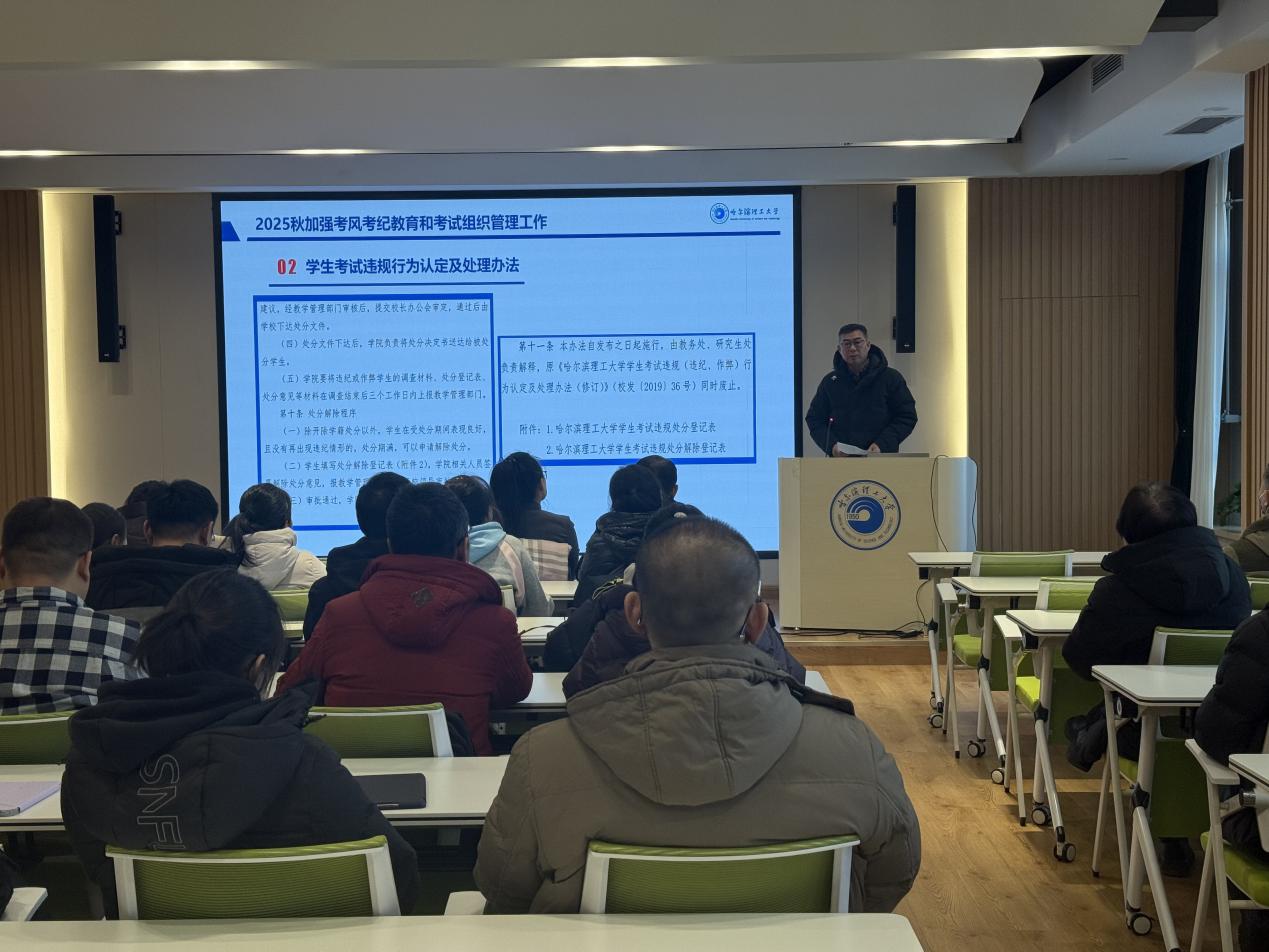 首先,毕卉围绕考风考纪和考试组织管理工作的重要性指出:教风、学风、考风,不仅关乎数千名学生的前途,更代表着哈尔滨理工大学的学术品格与育人成色。考试不仅是检验教学效果的“试金石”,更是守护教育公平的“生命线”。教学规范,特别是考试与课程管理的规范,是衡量办学水平的重要指标,是提高教学质量的基础保障。各系要切实履行考试管理主体责任,规范考试各环节流程,明确命题、制卷、监考、阅卷等各环节岗位职责,确保责任落地。全体教职工要深刻认识考试工作的严肃性,严格执行学校相关文件规定。