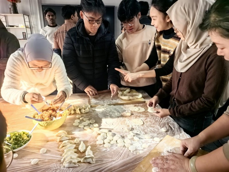 活动期间,外国语学院为UTP师生精心筹备了不同级别的汉语课程及中国文化课程。该课程以“哈尔滨”为切入点,融合城市历史、节庆习俗与日常生活场景,助力来访学生迅速融入本地语境。课堂内容不仅涵盖哈尔滨历史,更巧妙嵌入文化实践,学生一边学习“擀皮”“调馅”“包裹”等词汇,一边动手包饺子、制作东北特色饭包,在烟火气中提升语言应用能力,感受中国饮食文化的温度。