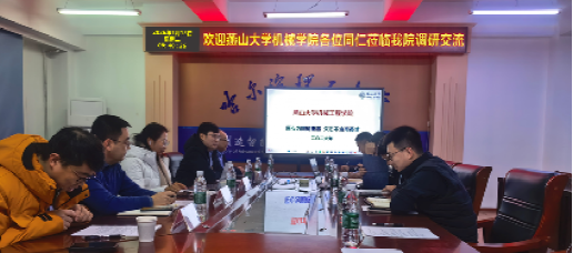 岳彩旭代表学院对燕山大学同仁的到访表示热烈欢迎。他详细介绍了我校机械动力工程学院的办学情况、办学成果及科研方向,重点分享了学院的学科特色、师资队伍、科研平台以及在人才培养、科学研究和社会服务方面取得的主要进展,并表达了与燕山大学这一国内机械工程学科强校加强合作的诚挚愿望。