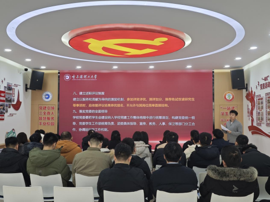 培训环节,校团委宣传实践科负责人李晟睿领学《关于推动高校学生会(研究生会)深化改革的若干意见》《关于巩固高校学生会(研究生会)改革成果的若干措施》《普通高等学校学生(研究生)代表大会工作规定》等系列重要文件,重点围绕学生会组织的政治属性、职能定位、队伍建设等方面,结合我校学生会组织工作实际,梳理了改革推进的重点任务与注意事项。