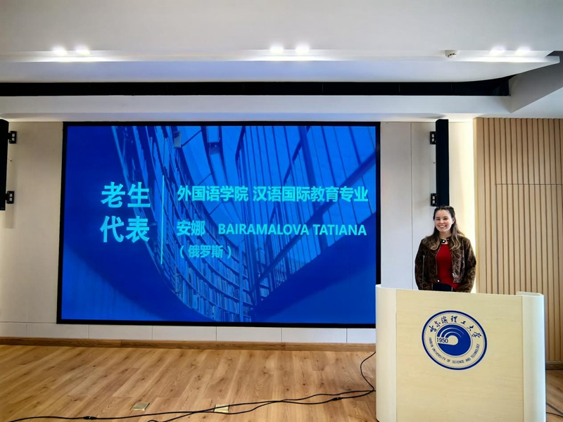 随后,新生代表依次发言。来自俄罗斯的丁小月分享了初到校园的感受,感谢师生温暖陪伴的同时更表达了自己能够快速适应环境的喜悦;来自越南的曦薇同学则表达了对未来学习生活的期许,希望与各位同学共同成长,虽然大家目标不同但是都要成为“更好的自己”。在校生代表安娜以“学姐”的身份,结合自身学习经历为新生们分享了汉语学习的实用建议,鼓励大家克服语言难关,勇敢表达、积极探索。
