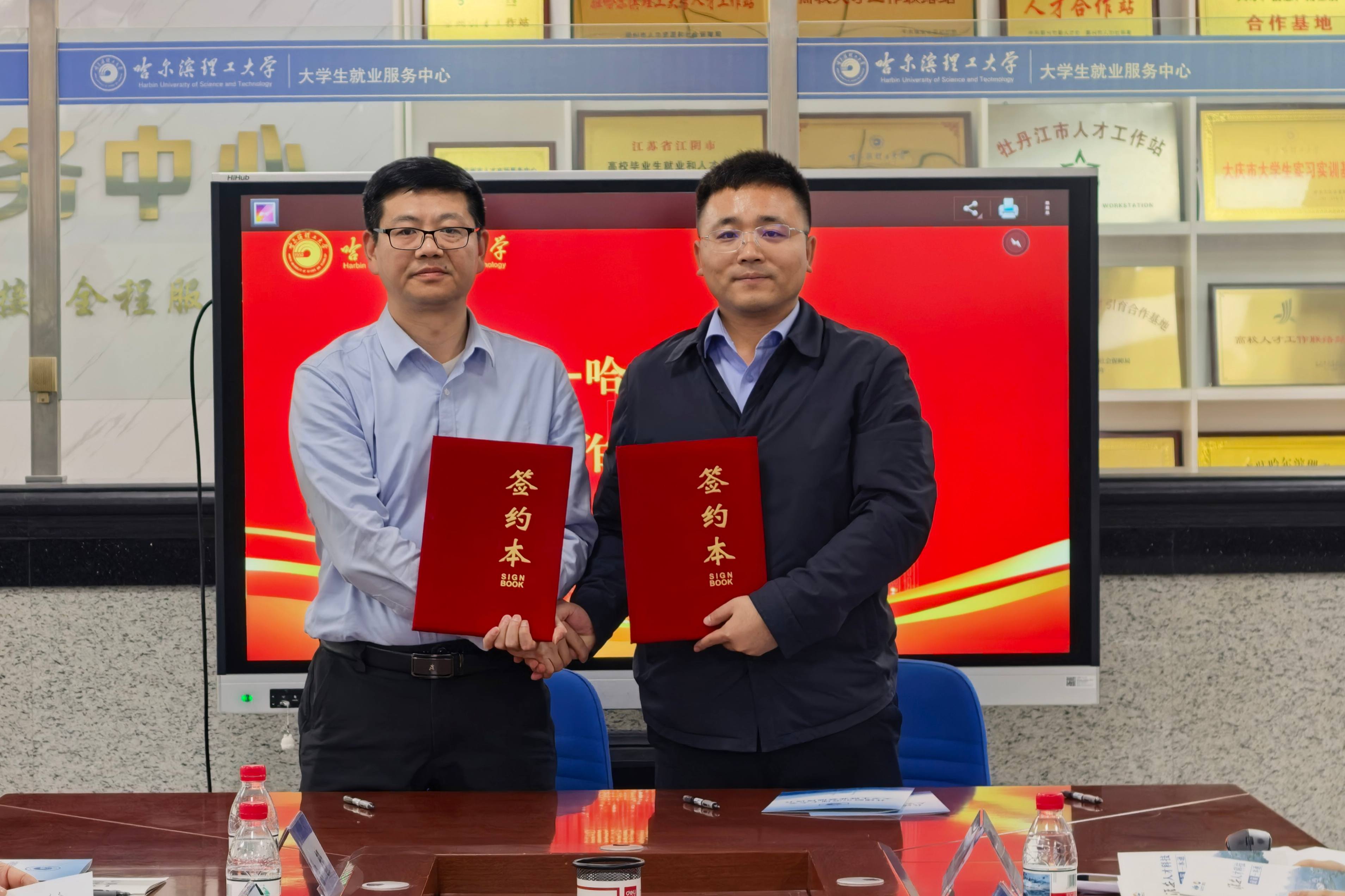 双方为“哈尔滨理工大学大学生就业创业基地”揭牌