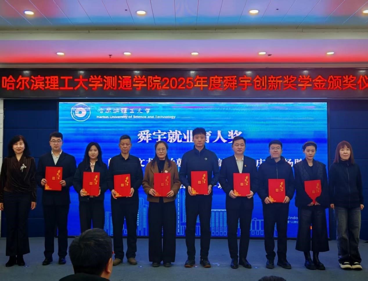 为全方位推动毕业生高质量充分就业,将提升学生创新能力贯穿就业育人与人才培养全过程,系统落实促就业专项行动,3月27日下午,测通学院在西区一号楼多功能厅成功举办2025年度舜宇创新奖学金颁奖仪式。舜宇集团有限公司人力资源部经理陈煌煌、招聘经理王海峰,学院党委书记黄春丽、党委副书记杨芳、副院长王爱丽、全体辅导员、获奖师生代表及150名学生代表共同出席。本次活动由学院就业干事张德龙主持。