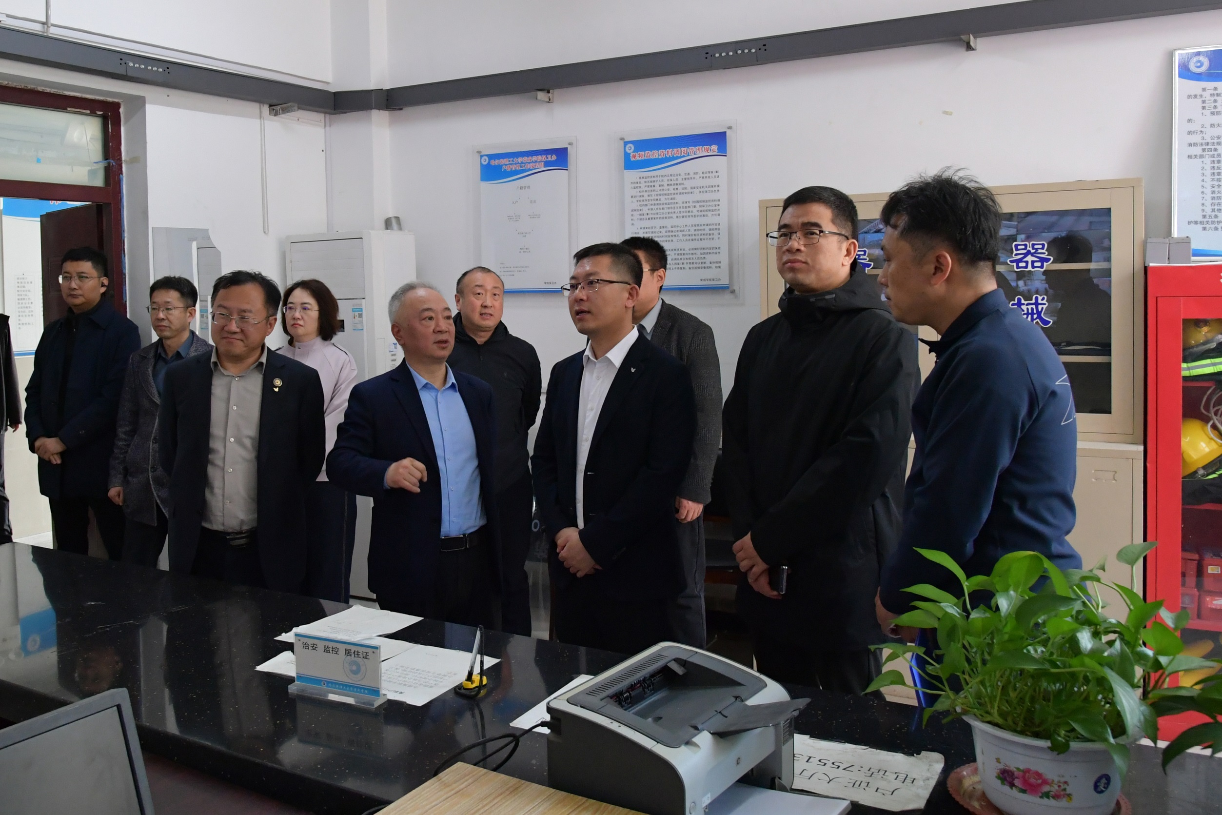 调研期间,胡军深入校园一线,开展实地安全检查和走访工作。他先后前往工程训练中心、危化品实验室、监控中心、机械工程系实验室等重点区域,仔细核查设备运行状态、安全防护措施落实、危化品储存管理等情况,对检查中发现的潜在安全隐患,现场明确整改要求、提出具体意见。他强调,安全是学校工作的底线、发展的生命线,学院要提高政治站位,层层压实安全责任,对检查发现的问题建立翔实整改台账,明确整改时限、落实责任到人,实现闭环管理;要常态化开展安全隐患排查和安全教育培训,全面提升校园安全管理规范化、精细化水平,为学院高质量发展保驾护航。