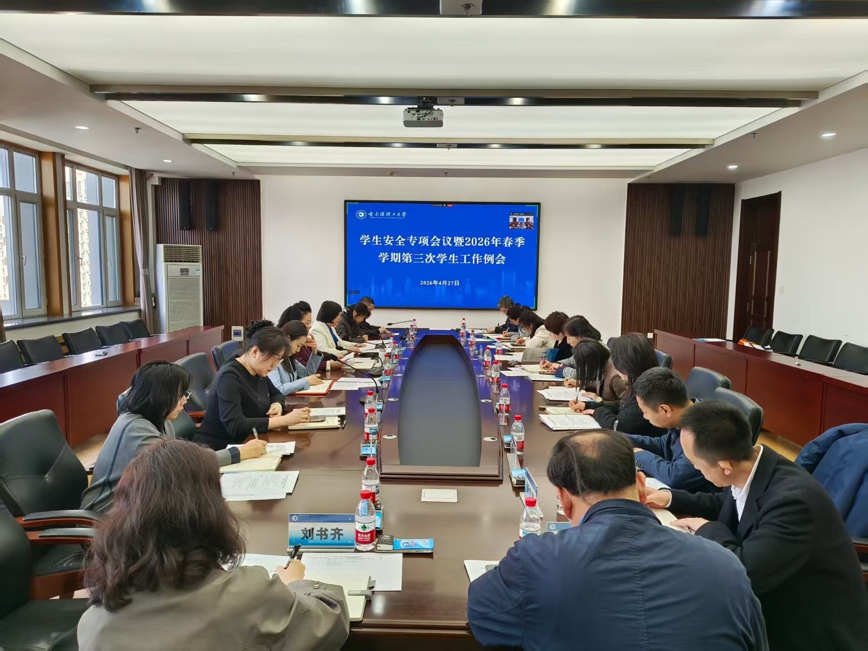 为深入贯彻教育部及学校关于安全工作的部署要求,准确把握当前学生安全形势,系统梳理突出风险隐患,以更高标准、更实举措筑牢校园安全防线,4月27日下午,学校召开学生安全专项会议暨2026年春季学期第三次学生工作例会。学校党委副书记张艳君出席会议并讲话,会议由党委学生工作部部长戴湘竹主持。