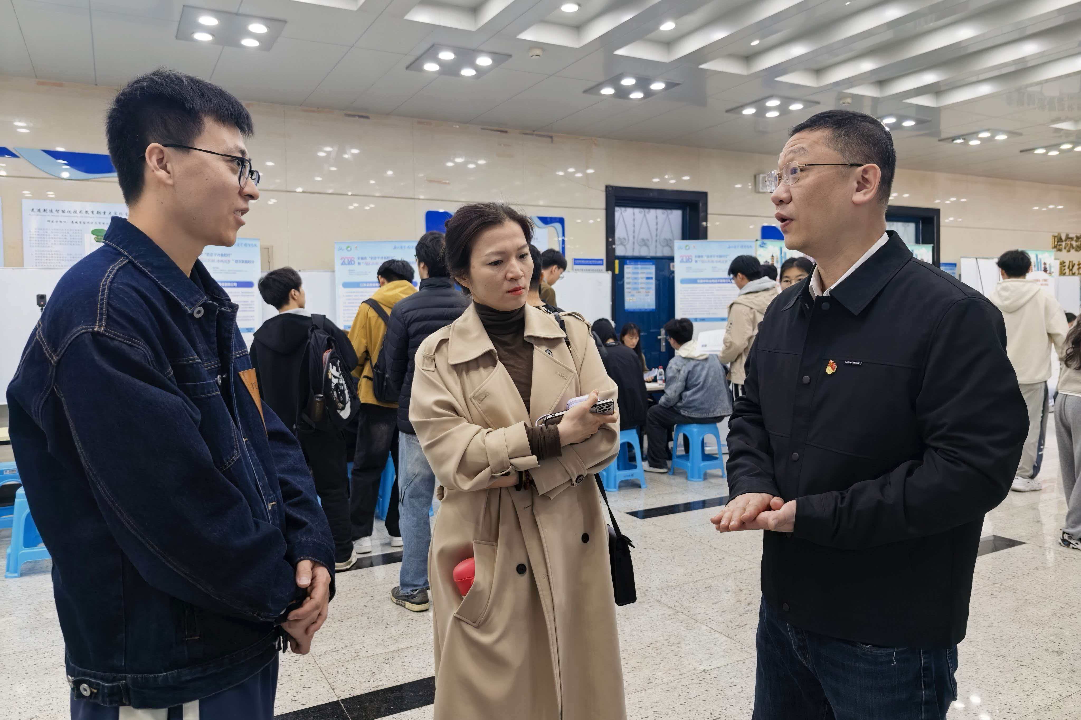 4月29日,2026年“苏荟英才”引才专项行动高端装备制造和机械专线活动、无锡市“百企千才高校行”暨“智汇滨湖・冰城逐梦”专场招聘会,在我校西区1号楼二层阳光大厅成功举办。就业中心副主任崔征与地方及企业相关负责人座谈交流,陪同调研参观我校就业服务中心,双方就深化校地校企合作,全力助力毕业生高质量充分就业深入交流。