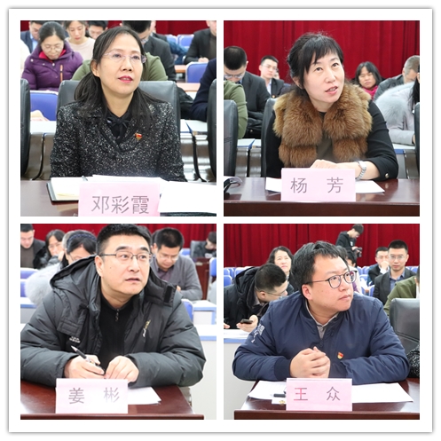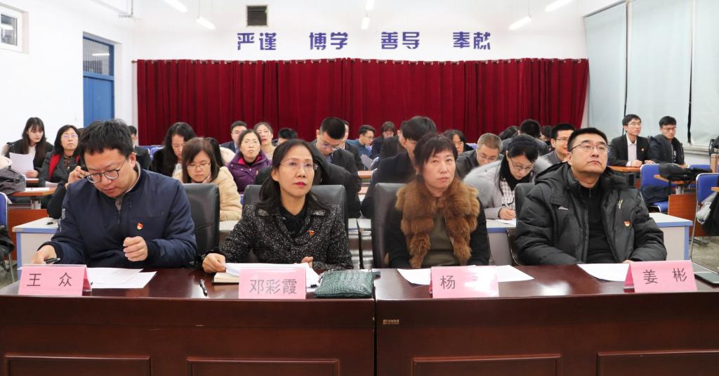最后,邓书记做点评,充分肯定支部书记们抓党建工作取得的显著成效,发挥了基层党支部的战斗堡垒作用,促进了学院各项工作的有力推进,为学院营造了良好的政治生态。同时也指出党建工作存在的一些问题,希望各支部结合专业、学科特点,扎实推进党建工作,并强调:一要充分认识新时代加强高校党支部建设的重要性和紧迫性。二要牢固树立党的一切工作到支部的鲜明导向,把党支部建设作为党建工作最重要的基本建设,着力发挥党支部政治引领、规范党的组织生活、团结凝聚师生和促进学校学院中心工作的主体作用。三要把师生的理想信念教育作为支部工作的首要任务,把推动讲政治要求贯穿教育教学和科研活动全过程作为支部工作的重要着力点,把解决实际问题、增强师生归属感获得感作为支部工作的重要落脚点,加强师生的思想政治工作。四要坚持“三会一课”制度、组织生活会制度、谈心谈话制度和民主评议党员制度等,严格规范组织制度。五要盯紧问题,抓好整改落实。以问题为导向,列出2019年“一承诺两清单”,以全国样板支部的创建为依托,以党支部标准化建设全覆盖为目标,对标“七个有力”职责,不断提高基层党组织的组织力,用习近平新时代中国特色社会主义思想铸魂育人,为推动我校“双一流”建设和强校建设再创佳绩。