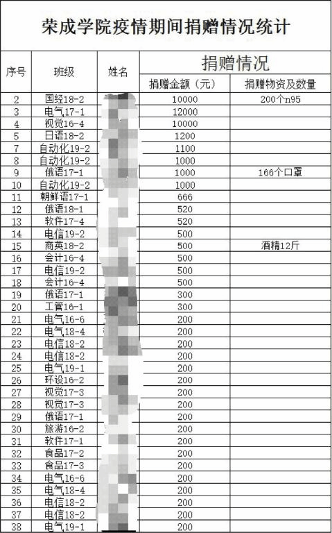 学院学生捐赠情况统计