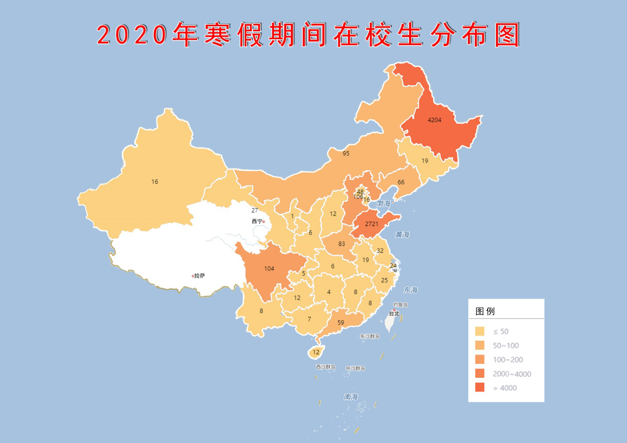 按照学校自1月23日起实行防疫信息“日报送、零报告”制度的要求,学院把学生工作现阶段到开学前全院学生关于疫情复查排查工作为工作重点,精准掌握学生疫情动态近况为工作难点,学生反馈疫情信息是否真实准确为工作风险点,通过各种防疫情信息平台,实时统计所有学生疫情期间相关信息,已经建立“学生住所地”、“日健康情况”、“分类学生群体”等数据库。目前,学院已经建立“学生、学生干部、辅导员、系部负责人,学工部门,学院领导”六级一体化树状体系结构,数据初步实现“学生-系-学工办-学院”四个层级报送,经过“学生-辅导员-系书记-学工办负责人-学院党委副书记”一站式传递和报送,最后数据上报学院领导和学校上级部门。对于填写数据错误,遗漏打卡的学生,辅导员通过电话、微信等方式提醒提示学生修改数据。根据学生填报数据情况,辅导员主动加强与学生联系,密切关注学生健康生活动态,全院34名辅导员分别完成了250个班级关于疫情视频主题班会工作,传达近期学校关于疫情工作通知和安排,介绍疫情防控知识,答疑解惑释忧、传递学校温暖。(以下数据截止到2月17日)