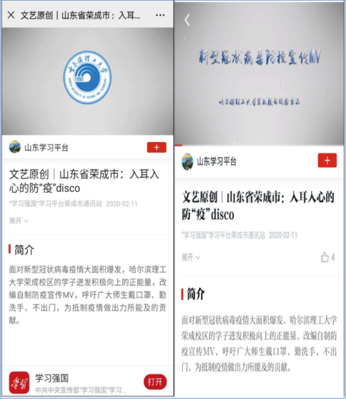 “学习强国”推荐了学院学生文艺原创《入耳入心的防“疫”disco》