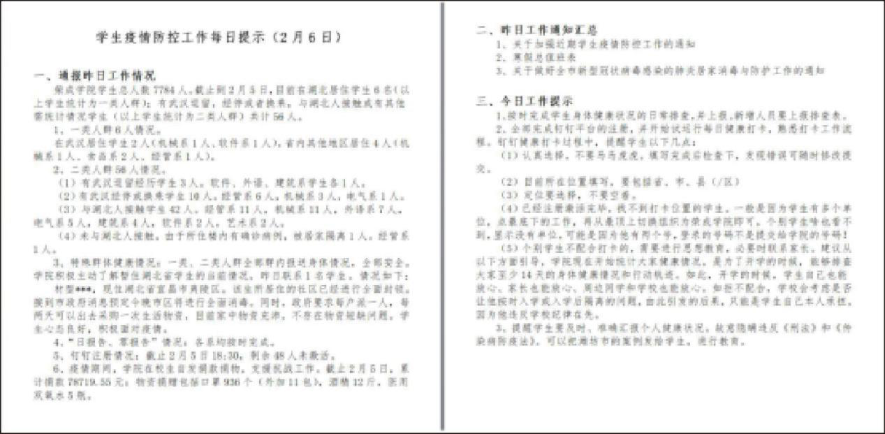 学生工作办公室对疫情工作进行每日工作提示