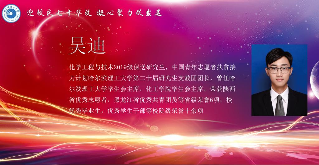 优秀学生代表、2019级硕士研究生吴迪向参会校友们表示了热烈的欢迎,向学院老师们的付出表示了由衷的感谢,并号召广大同学向优秀校友代表们学习,继续发扬化工学子艰苦奋斗的精神,早日成为祖国的栋梁。