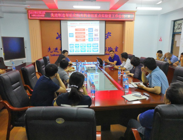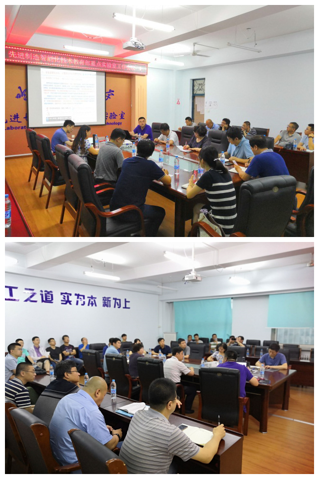 与会人员首先听取了由机械动力工程学院副院长姜彬作的关于“先进制造智能化技术教育部重点实验室建设工作情况”和 “前期国内教育部重点实验室调研情况”的简要汇报。与会者结合重点实验室专家论证会意见和学校要求以及会前在三个学院主要领导带领下对重点实验室现有工作基础和工作进展情况的实地检查情况,针对先进切削理论与刀具技术、数字化加工与制造过程智能化、高性能复杂件成型加工及智能化技术、高端装备设计及智能化技术等四个研究方向上的主要研究内容、研究目标和具体指标,及其对重点实验室验收和“双一流”学科建设的支撑作用进行了充分研讨,进一步明确了各学院、各研究方向的工作重点。
