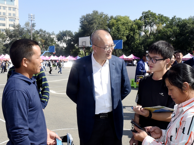 秋高气爽,艳阳高照。8月31日—9月1日,是我校2019级新生入学报到的日子,哈理工校园内人头攒动,热闹非凡,带着喜悦与梦想的7000余名2019级新同学从祖国四面八方汇聚理工校园,在这里开启他们实现人生理想的新征程。学校领导高度重视迎新工作,31日上午9时,校党委书记张洪涛,校长赵琳,校党委副书记陆岩,副校长郭二军、刘胜辉,纪委书记姚军,副校长刘侠在相关职能部处负责人的陪同下深入西区和南区迎新现场走访慰问。