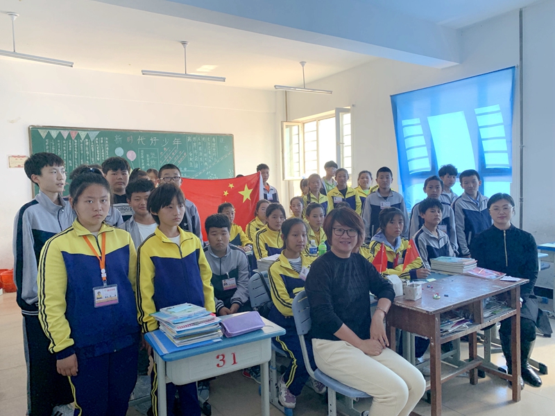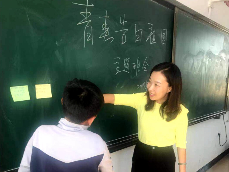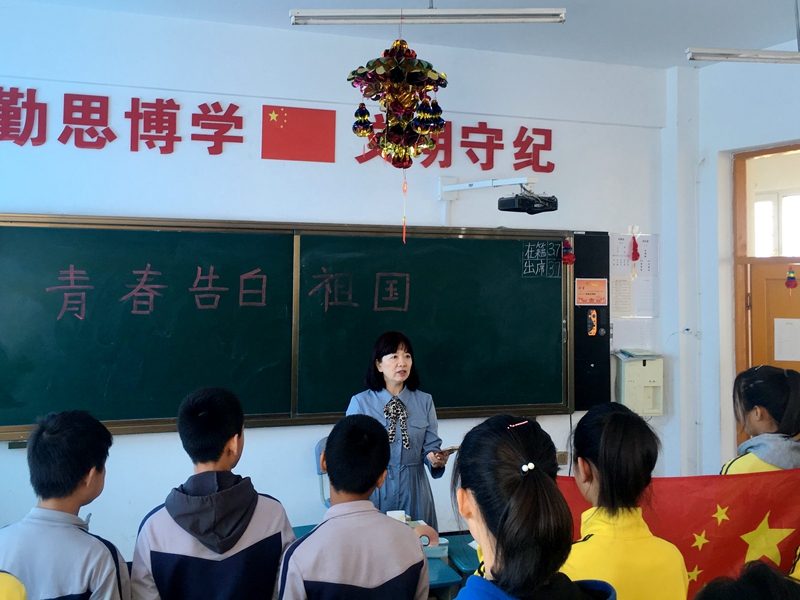 捐赠仪式结束后,参加活动的8位女博士深入康庄学校四个班级开展“青春告白祖国”主题班会活动。活动中,女博士老师们与同学们共同回顾新中国成立70年的辉煌历程,制作“青春告白祖国”主题板报,朗诵爱国主题诗歌《沁园春.国庆》,同唱《我和我的祖国》《我爱北京天安门》等歌曲,开展以爱国为主题的有奖竞猜等活动。主题班会各有特色,同学们兴致高涨,气氛热烈,爱国氛围浓厚。每一位同学都通过小粘贴留言表达了自己对祖国的祝福。最后,主题班会活动以师生同向祖国告白、我爱你中国、祝福新中国70岁生日快乐结束。(摄影:徐状、女博士联谊会)