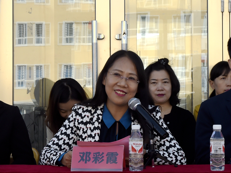 邓彩霞会长代表女博士联谊会致辞。她指出,为深入贯彻落实习近平总书记提出的“扶贫先扶志”的理念,帮助新立村的贫困户学生顺利完成学业,助力新立村精准扶贫、精准脱贫,学校女博士联谊会第三次来到丰乐乡康庄学校,举办“青春告白祖国”扶贫助学活动。联谊会曾于2017年10月筹集善款34200元,共资助贫困户学生100余人次。本次扶贫助学活动共资助学生17人,发放助学金10000元。她希望联谊会的善心义举传递给更多的爱心人士,为巴彦县的脱贫攻坚工作做出更大的贡献。