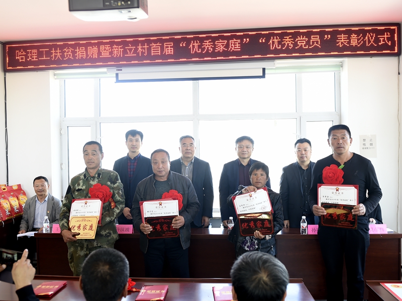 董少伟宣读了获得“优秀家庭”和“优秀共产党员”名单。新立村共有5人获得“优秀共产党员”荣誉称号,有10个家庭获得优秀家庭荣誉称号。与会领导为获得表彰的党员和家庭颁发了荣誉证书、奖牌和纪念品。