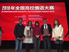 2019年恰逢中华人民共和国成立70周年、中俄建交70周年,70年来,中俄人文交流春风化雨、润物无声,为两国关系牢固稳定发展奠定了坚实的民意基础。在中俄关系高水平发展的背景下,由教育部国际合作与交流司主办的“全国高校俄语大赛”至今已成功举办十届。教育部高等学校外国语言文学类教学指导委员会俄语分委会主任刘宏发言指出:全国高校俄语大赛为中国外语届参与面最为广泛,比赛形式最为丰富,对教学质量提升影响力最大的外语赛事。赛事活动是学习活动,是实践活动,是交流活动,更是磨练意志,完善品行的活动。在教务处与研究生部的支持下,让学生在掌握课堂知识的同时,在实践中锻炼提高,以坚定的脚步向更高的目标迈进。