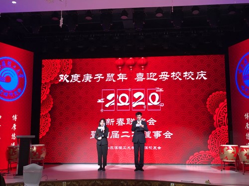 欢度庚子鼠年,喜迎母校校庆。1月11日,哈尔滨校友会新春联谊会暨四届理事会年会在哈尔滨红事会酒店吉祥如意厅成功召开。校长赵琳和校党委副书记陆岩代表学校出席活动并讲话。校友总会顾问刘君,校友总会秘书长、招生与就业工作处处长王俊明,部分学院和部处负责人,校友办相关人员陪同参加了活动。哈尔滨校友会会长于志超、秘书长邵帅等第四届理事会成员及90余名校友代表参加了活动。