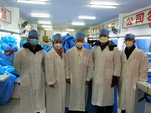 受党委书记张洪涛和校长赵琳的委托,学校办公室主任郗朝晖,招生与就业工作处处长、学校教育发展基金会理事长王俊明,国有资产处处长初田辉,校医院医生崔思亮等人来到刘凤龙校友的家族企业—黑龙江洪岩服饰有限公司接收捐赠物资,并代表学校表达了诚挚的感谢。刘凤龙校友和于洪岩总经理代表洪岩服饰有限公司对学校一行表示热烈欢迎,陪同大家参观了公司的生产车间,详细介绍了洪岩服饰有限公司的生产规模和一次性连体式隔离衣的制作流程。随后,双方签订了“哈尔滨理工大学防疫物资捐赠协议”并将捐赠物资转运至校医院,用于学校的疫情防控专项工作。