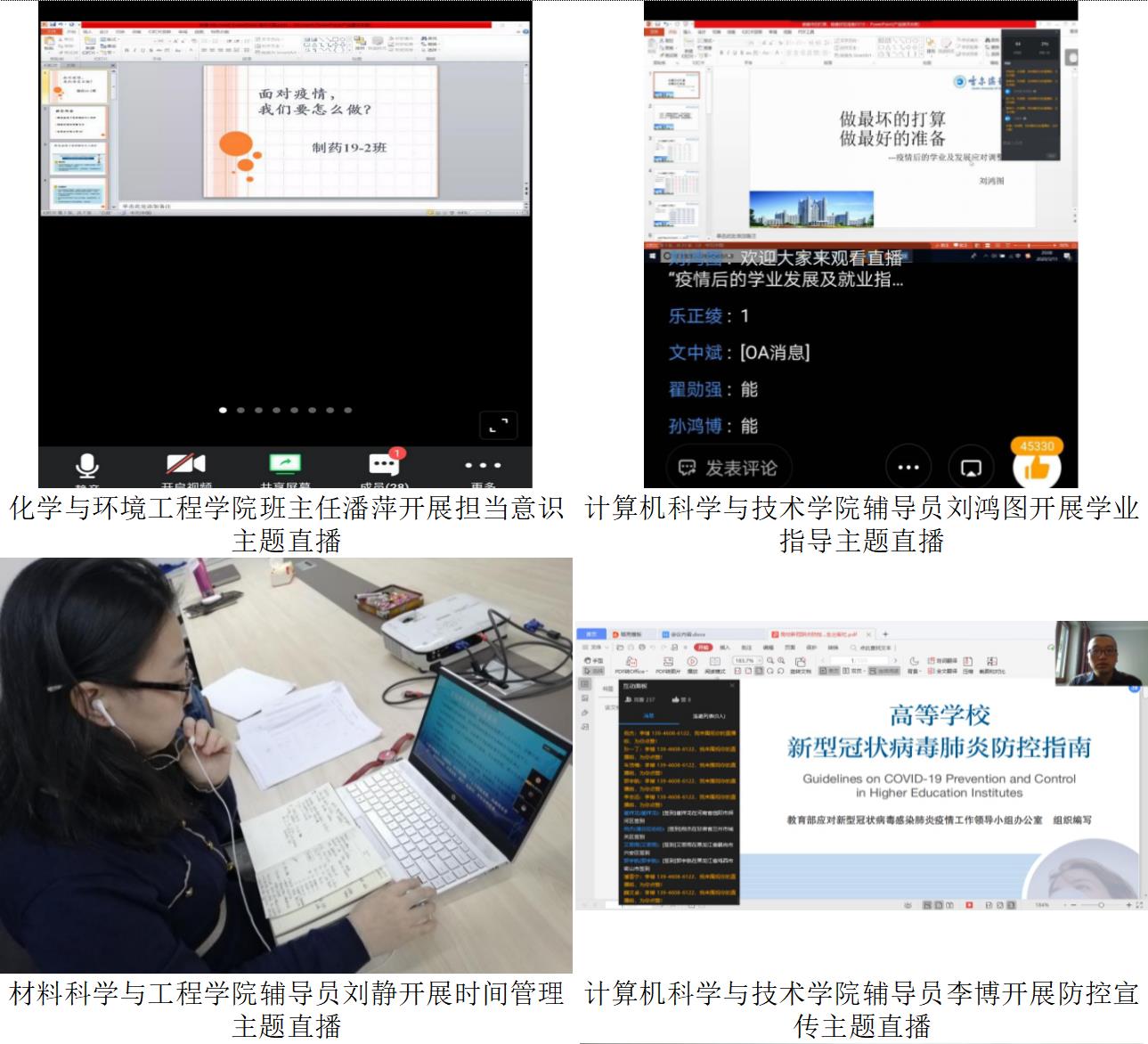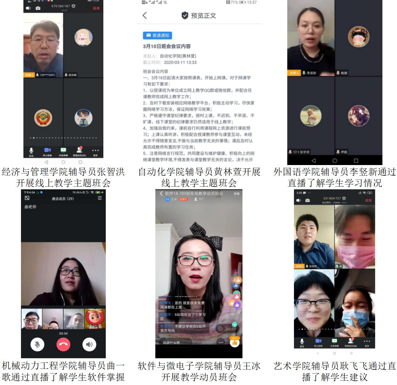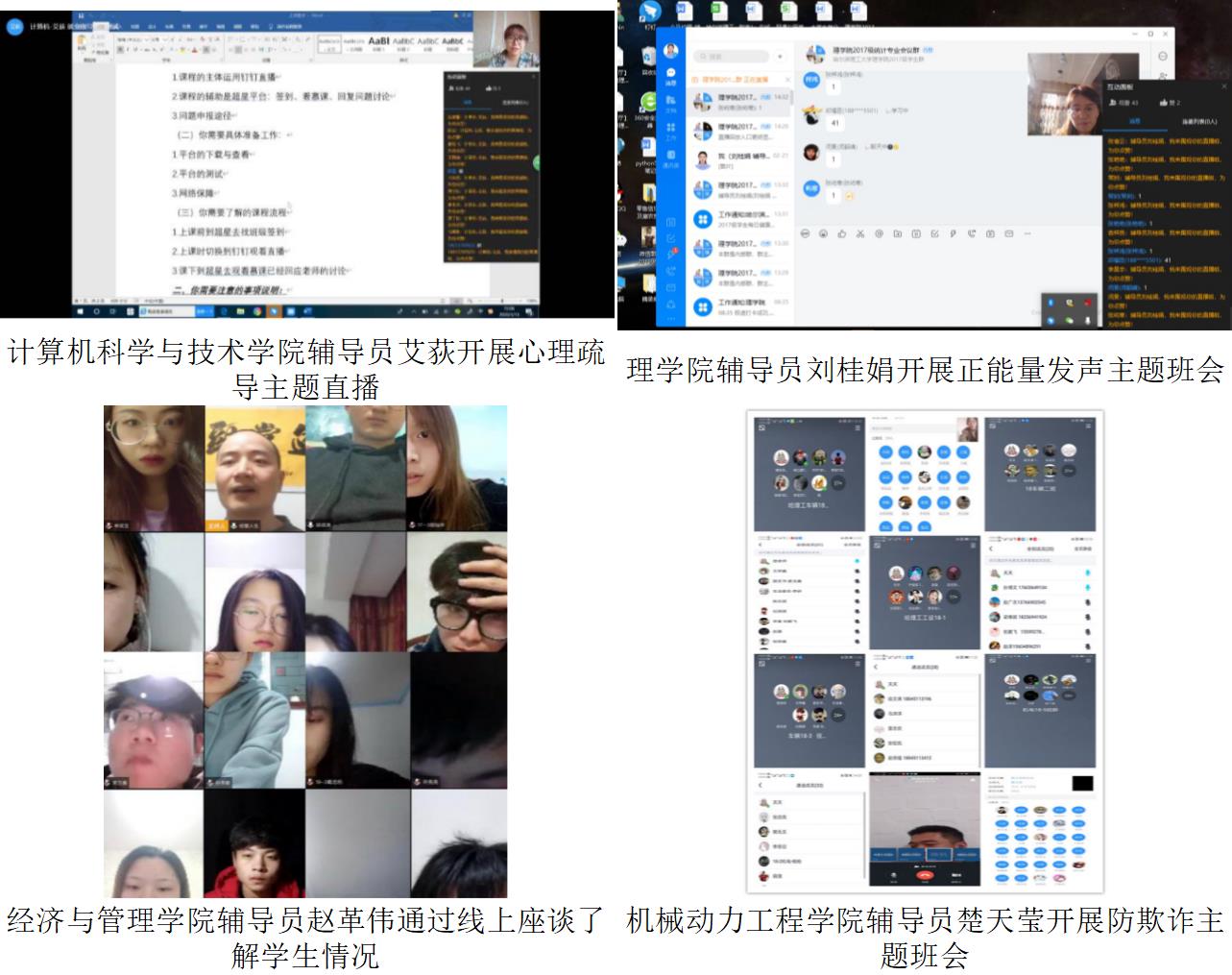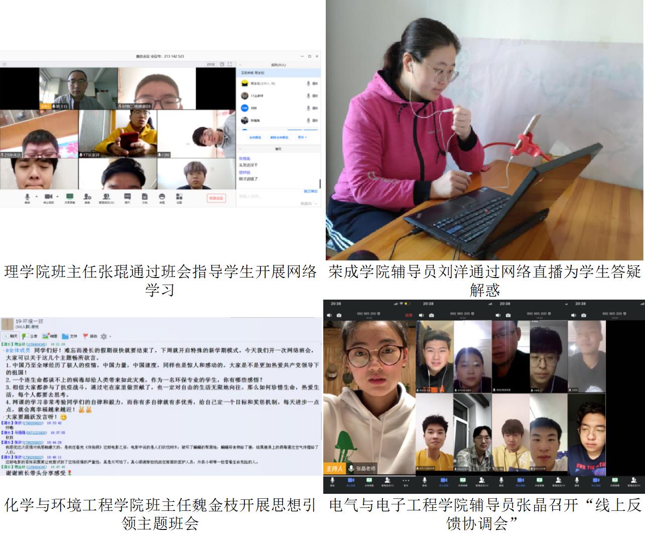 为迎接我校2020年春季学期3月16日“开学日”,哈尔滨理工大学辅导员、班主任为配合教学单位保障教学进度和教学质量,有效落实《关于开展在线教学活动的学生管理意见》,开展“云办公”、预演“云管理”,召开网络主题班会,引导学生调整状态,整装“宅学”设备,增强线上学习的责任意识、主动意识和自律意识,与学生同心战“疫”。