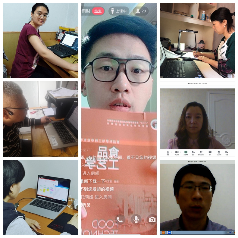 燕红老师自费购买高拍仪,采用“腾讯会议”软件结合高拍仪手写投屏分享直播教学的方式,还原了课堂推演过程;魏金枝老师为了给学生一个清新的感观效果,添置了新的电脑和打印机;王新铭老师为丰富线上教学的视觉感观,多方收集素材,还特意跑到超市拍了各类食品的视频,自学视频加工软件进行剪辑和编辑,整合到线上教学资源中;杜青林老师因原课程教材内容滞后于国家新出台的标准,为了提前给学生发放学习资料,日夜奋战,用一个月的时间撰写了一本新教材;李丽波老师、于红老师等老师本学期教学任务繁重,为了保证完成教学任务,她们没日没夜一丝不苟地工作,确保了三门课都如期、完美地开出;尚岩老师、刘丹青老师、纪红蕊老师等许多老师都采用各种方式克服了家里多人上课,网络受限,孩子小等困难,保质保量地开出了网课……
