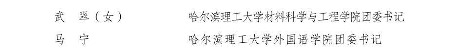 5月2日,黑龙江团省委发布《关于表彰 2019 年度“全省优秀共青团员”“全省优秀共青团干部”“全省五四红旗团委(团支部)”的决定》。我校外国语学院团委荣获“全省五四红旗团委”称号,计算机学院计算机专业17-4班团支部荣获“全省五四红旗团支部”称号,材料学院团委书记武翠、外国语学院团委书记马宁荣获“全省优秀共青团干部”称号。