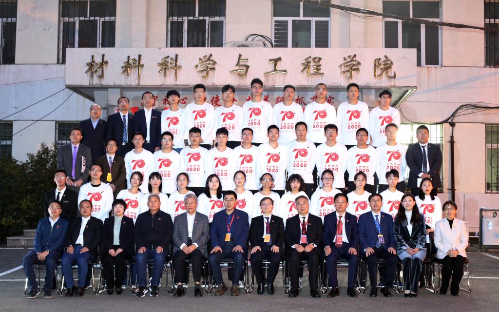 材料学院学生代表向两位院士献花;学院向两位院士赠送建校70周年纪念品。