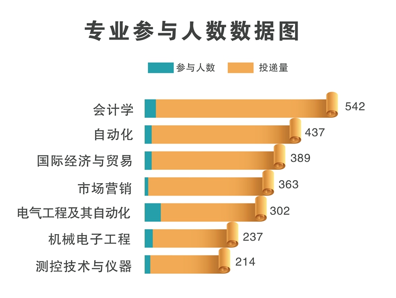 本次“空中双选会”从12月23日启动邀请,12月28日报名截止,共有172家用人单位参会,用人需求8957个。从12月29日双选会开始到1月5日闭幕,本次空中双选会平台累计访问达106080人次,简历投递8151份。其中,会计学、自动化、人力资源、国际经济与贸易、市场营销、电气工程及其自动化、机械电子工程、测控技术与仪器等专业毕业生参与最多,电子电气、计算机互联网、财务审计、机械仪器仪表、教育培训、销售等职位投递简历最多,受到学生青睐。