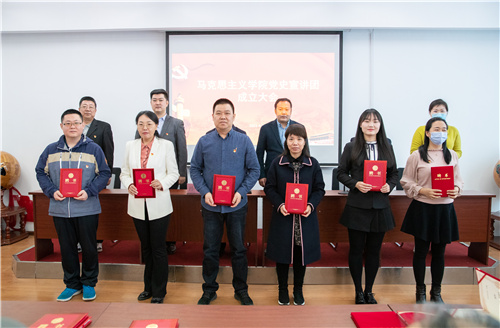 会上,党委宣传部部长姜国玉宣读宣讲团成立的决定、组织机构及成员名单,并作了讲话。他对宣讲团的成立表示祝贺,马克思主义学院抢抓全党上下开展党史学习教育的有利契机,学院遴选了在党史方面有研究的专家、教授、知名学者以及本硕优秀大学生,率先成立的专项宣讲团队。必将推动党史学习教育的深入开展。希望全体成员依托学科和专业优势,组成有深度又有温度、讲真理又讲真情、树信仰又树信心的宣讲队伍。