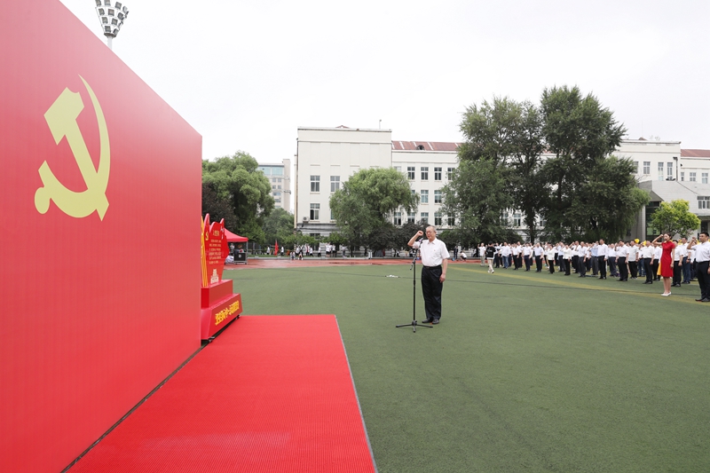 为庆祝中国共产党百年华诞,认真贯彻落实习近平总书记在庆祝中国共产党成立100周年大会上的重要讲话精神,进一步传承红色基因,坚定理想信念,用党的光荣传统和优良作风砥砺品格,以更加昂扬的姿态奋进新时代,迈向“百年理工”新征程,7月1日下午,学校在西区体育场举行“致敬百年 重温誓言”党员集体宣誓活动。学校领导、副处级以上党员干部、全体组织员、辅导员,学生党员代表共1700余人参加宣誓活动。