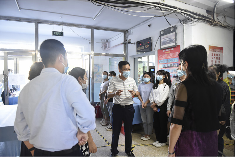 陆岩在现场指导时强调,这次演练是对学生开学及疫情防控准备工作的一场检验,各相关单位要提高站位,认真总结经验,进一步细化各个环节,不断优化工作方案和应急预案,坚持学生健康平安第一原则,树牢责任担当意识,认真开展好新冠肺炎疫情防控知识和疫苗接种宣传教育,全力以赴做好学生开学各项工作。郭二军强调,从9月4日起,在校生将分批次返校,9月8日起,新生陆续报到,这将是学校疫情防控工作中的重要环节,各部门要明确分工、协调联动,严格按照疫情防控要求、疫情防控标准做好学生返校的各项准备,保证返校保障条件严格达标、疫情防控措施精准到位,为学生顺利、平安返校奠定坚实基础。(摄影:隋然)