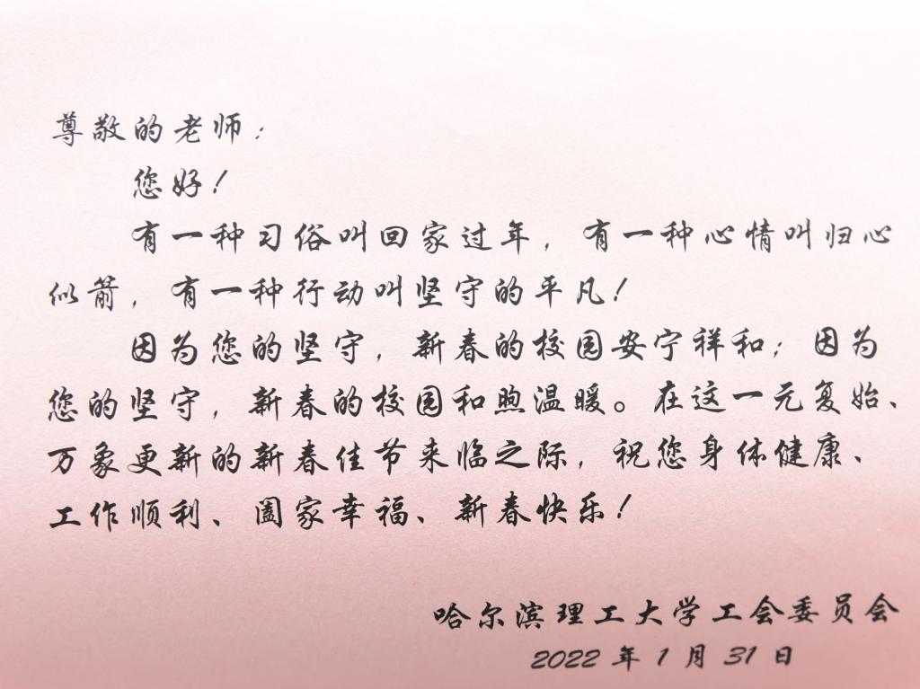 岁寒情暖,教职工们对学校领导的亲切慰问和新春祝福表示衷心的感谢。纷纷表示,身为理工一份子,一定坚守岗位、履职尽责,保障学校各项工作的有序开展和相关服务保障设备的正常运行,为打赢校园疫情防控阻击战做出应有的贡献,为校园安全稳定筑起一道坚实的屏障,确保广大师生过一个欢乐祥和的春节和平安快乐的假期。