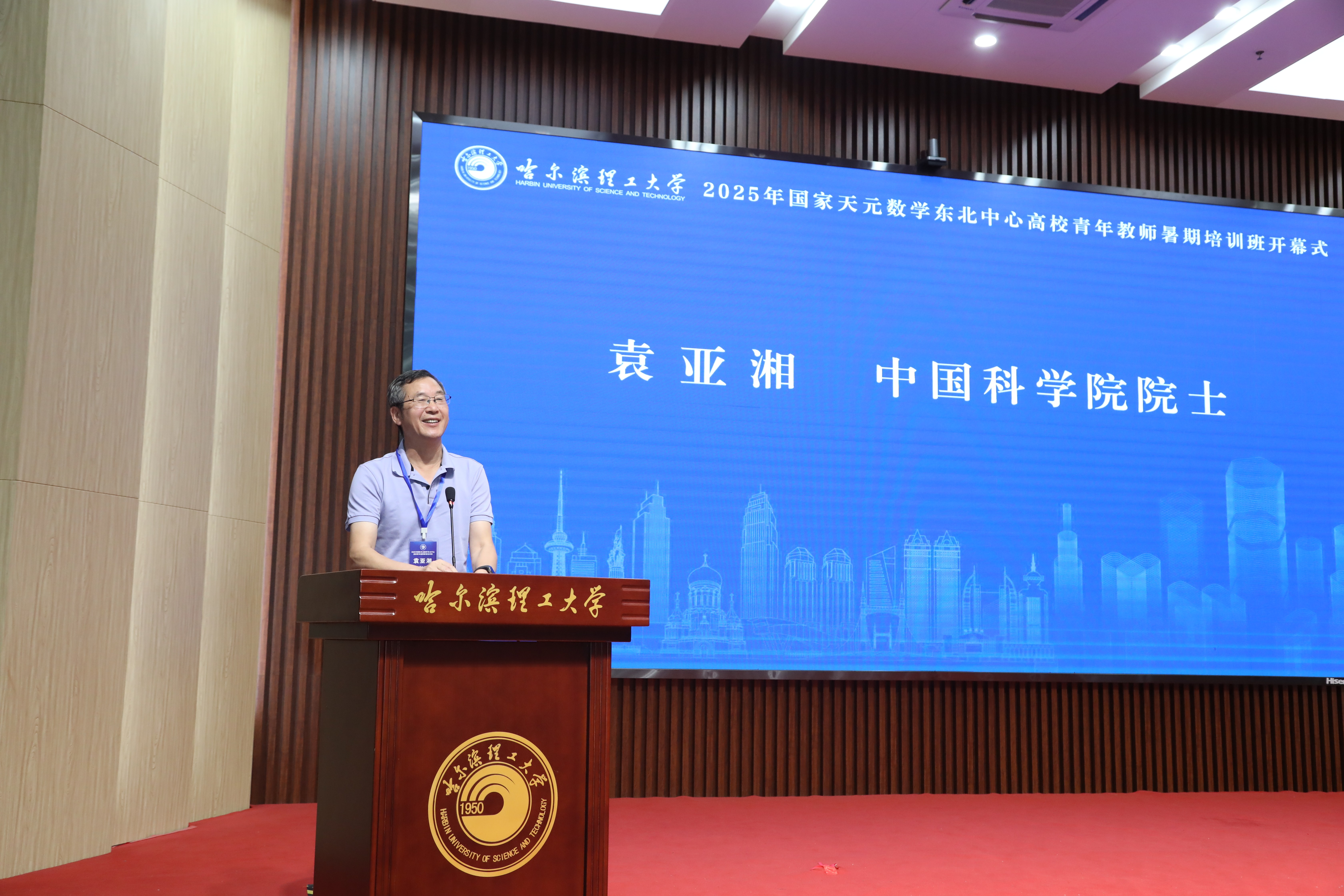 为提高东北地区高校青年教师教学科研能力,培养人工智能时代教师数字素养,促进大学数学课程数字化转型,近日由国家天元数学东北中心主办、哈尔滨理工大学承办的2025年国家天元数学东北中心高校青年教师暑期培训班在我校教学主楼五楼报告厅开幕。中国科协副主席、中国科学院院士袁亚湘,吉林大学党委常委、副校长张然出席开幕式并讲话,哈尔滨理工大学党委常委、副校长石颖致欢迎辞。